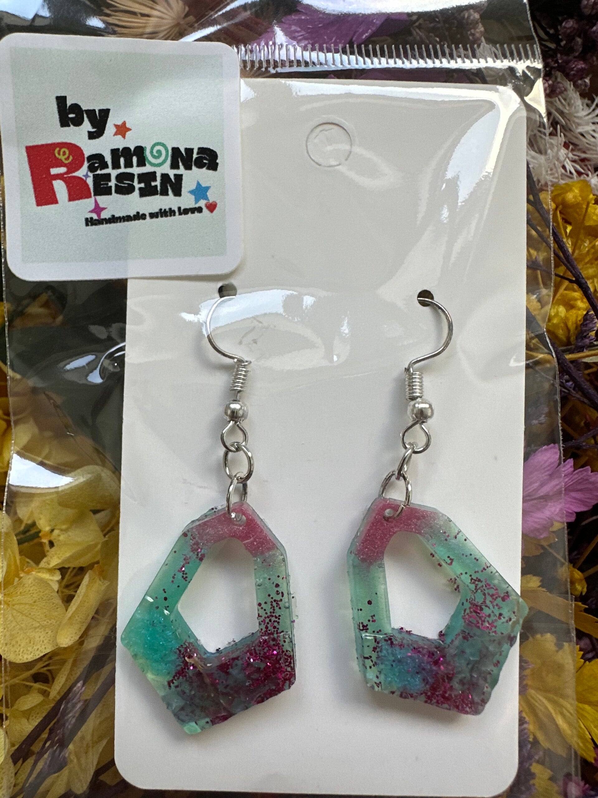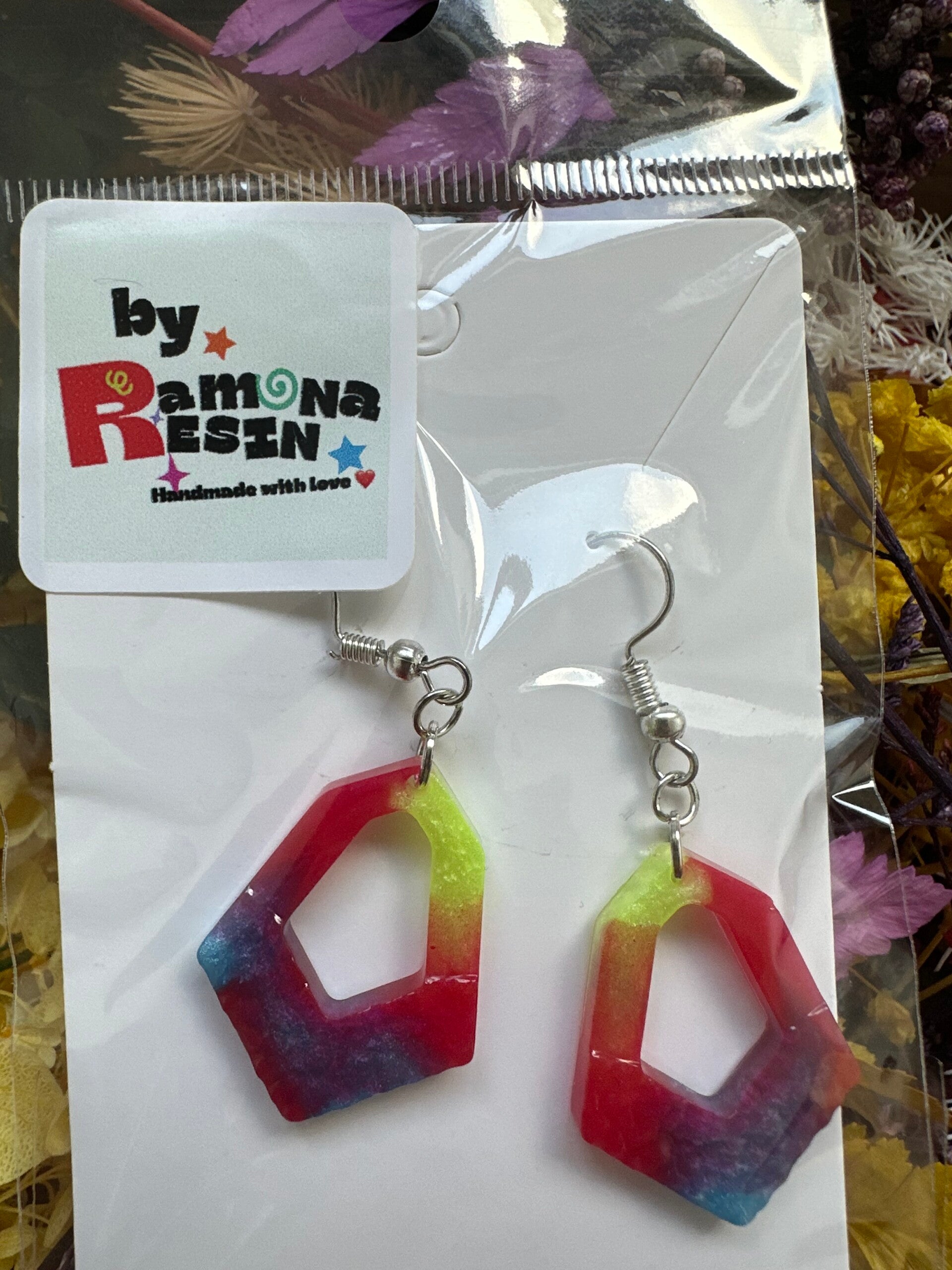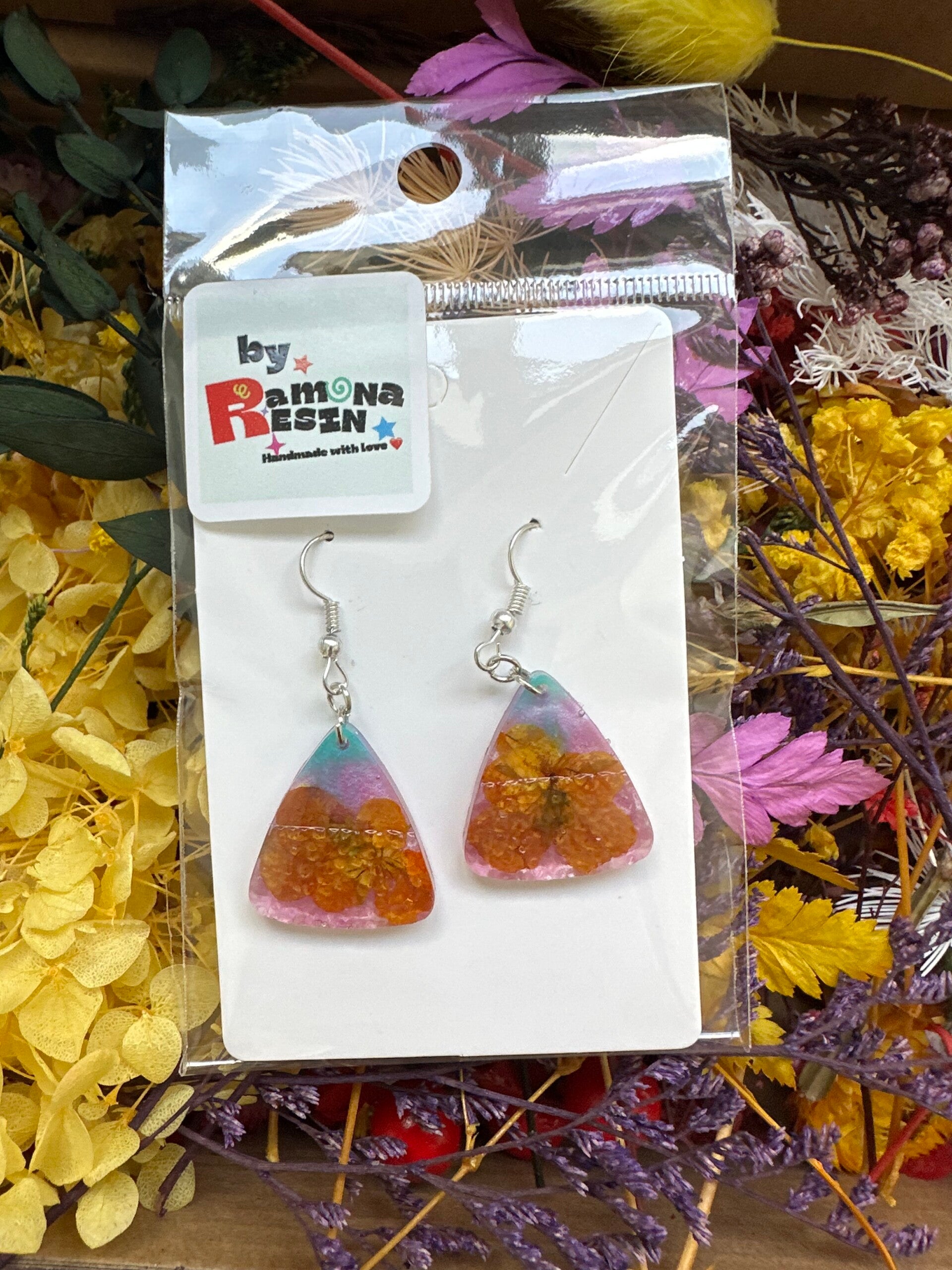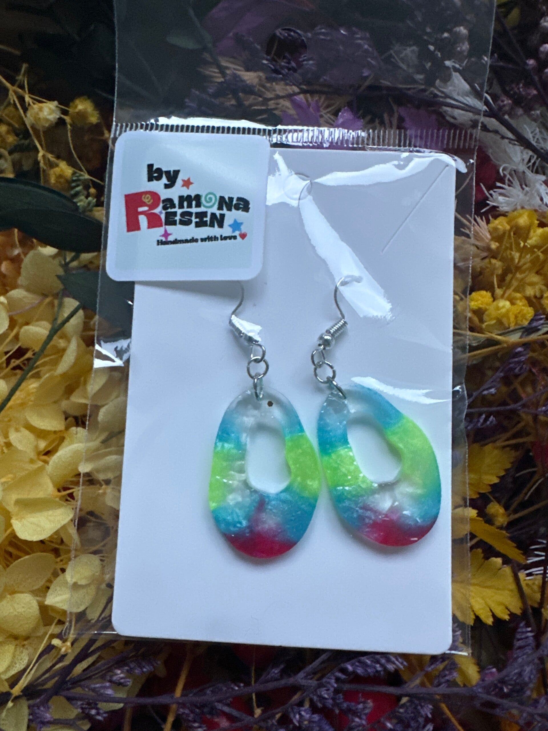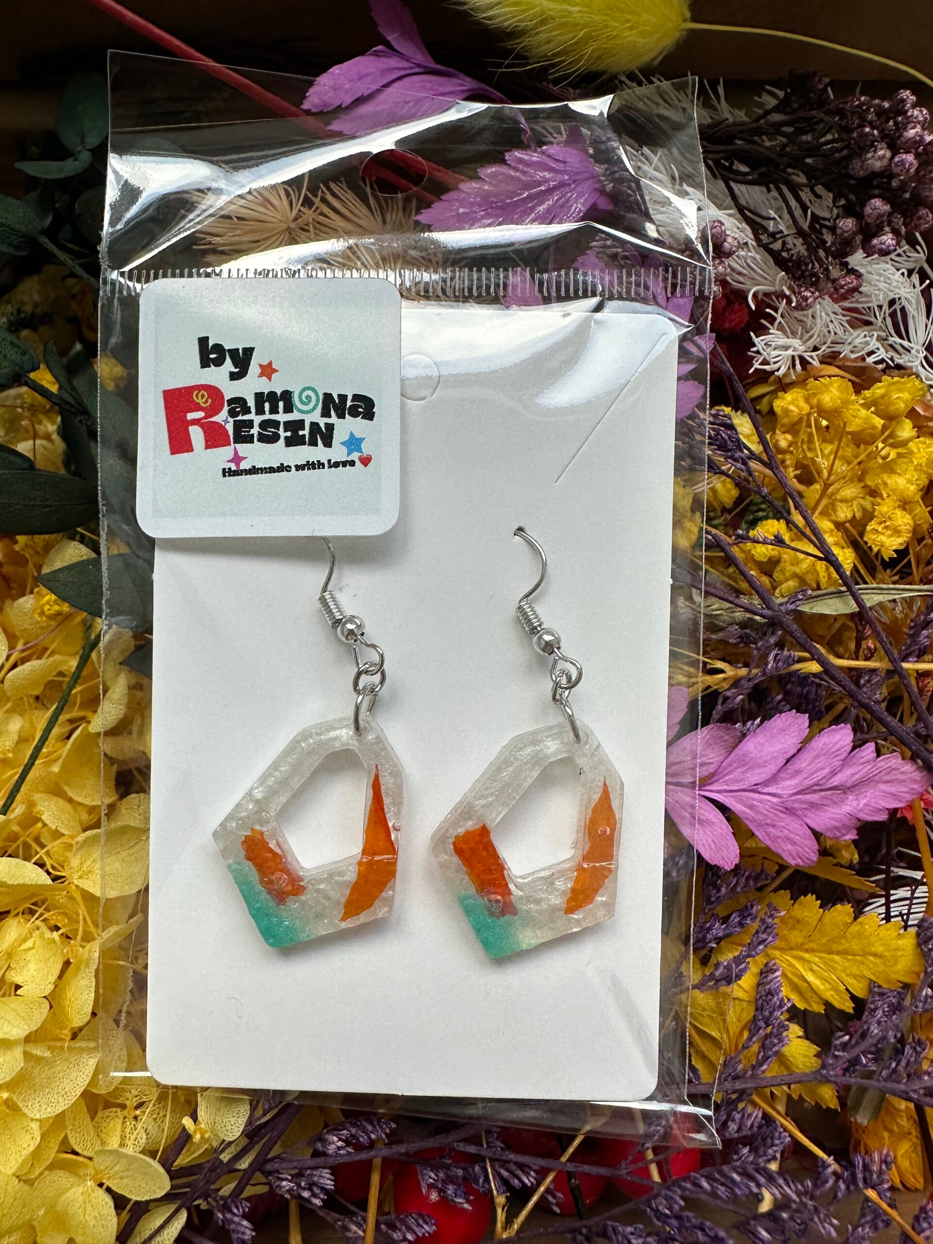 Resin floral/ colourful handmade small earrings