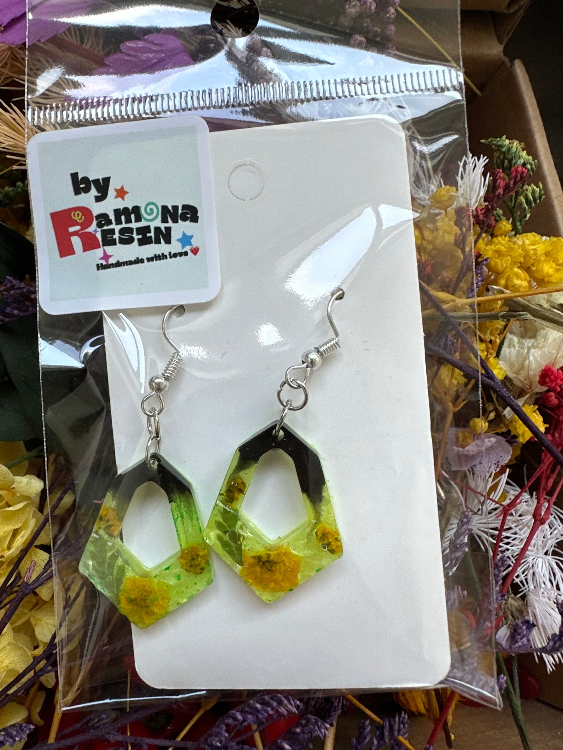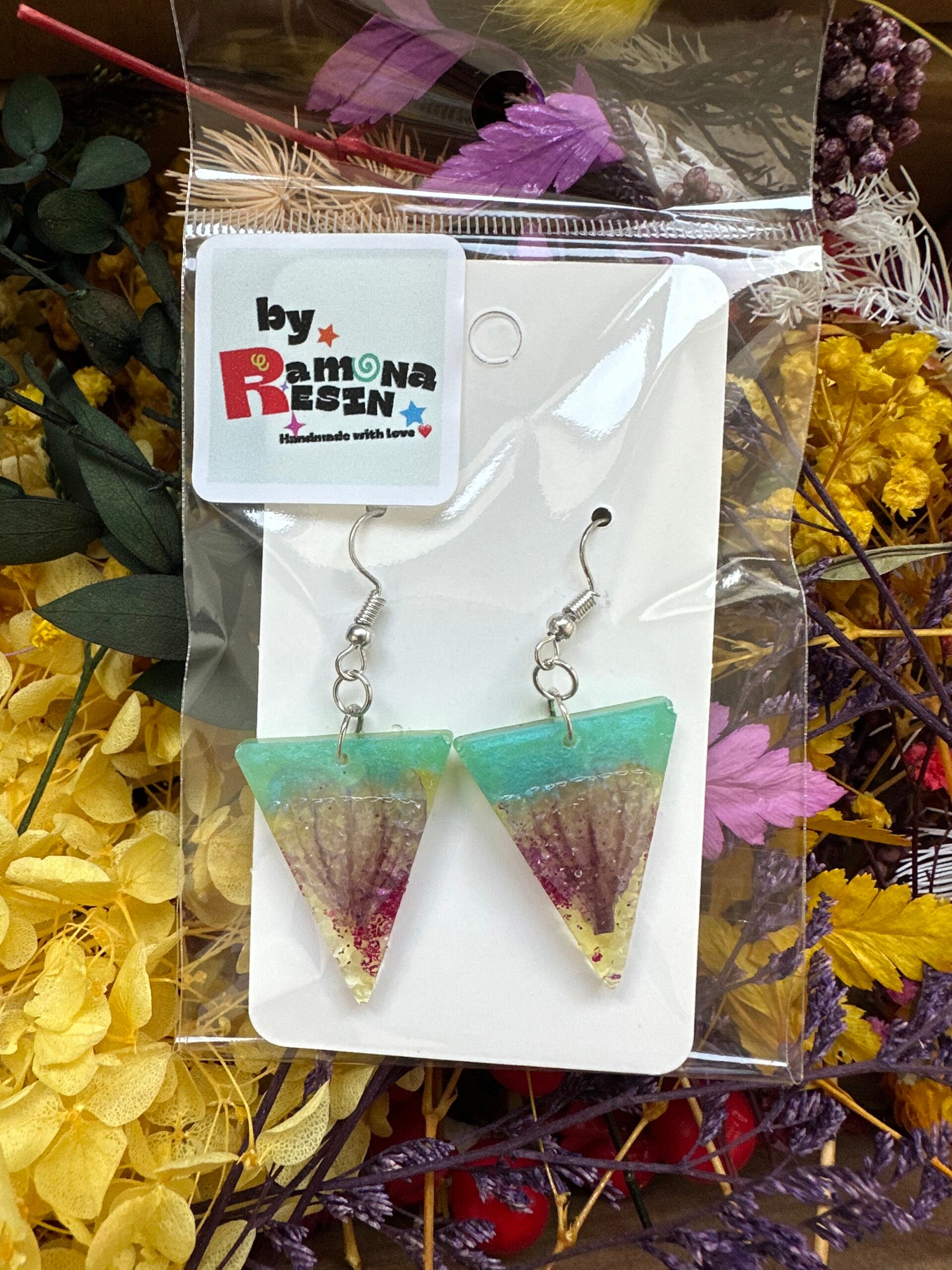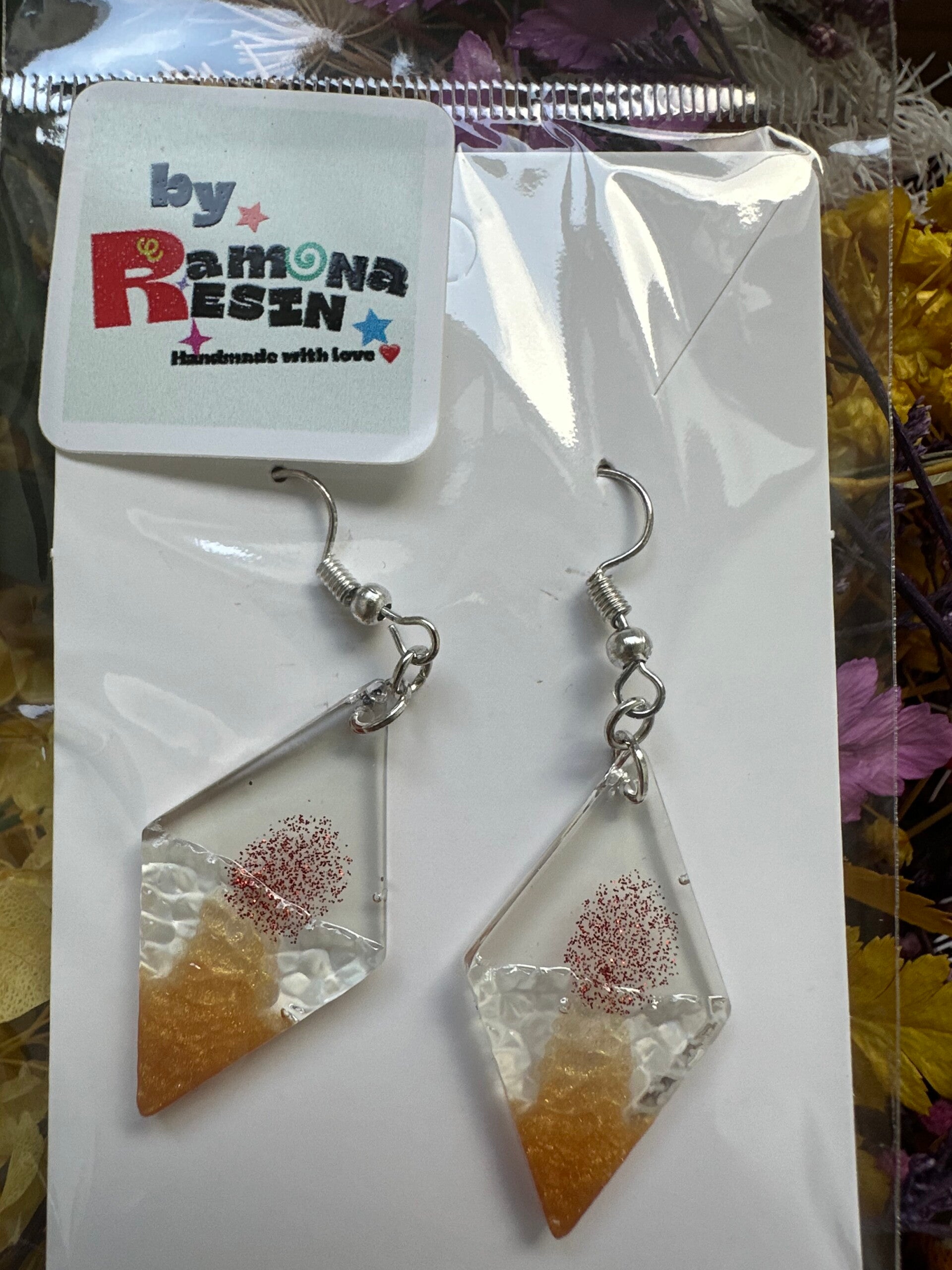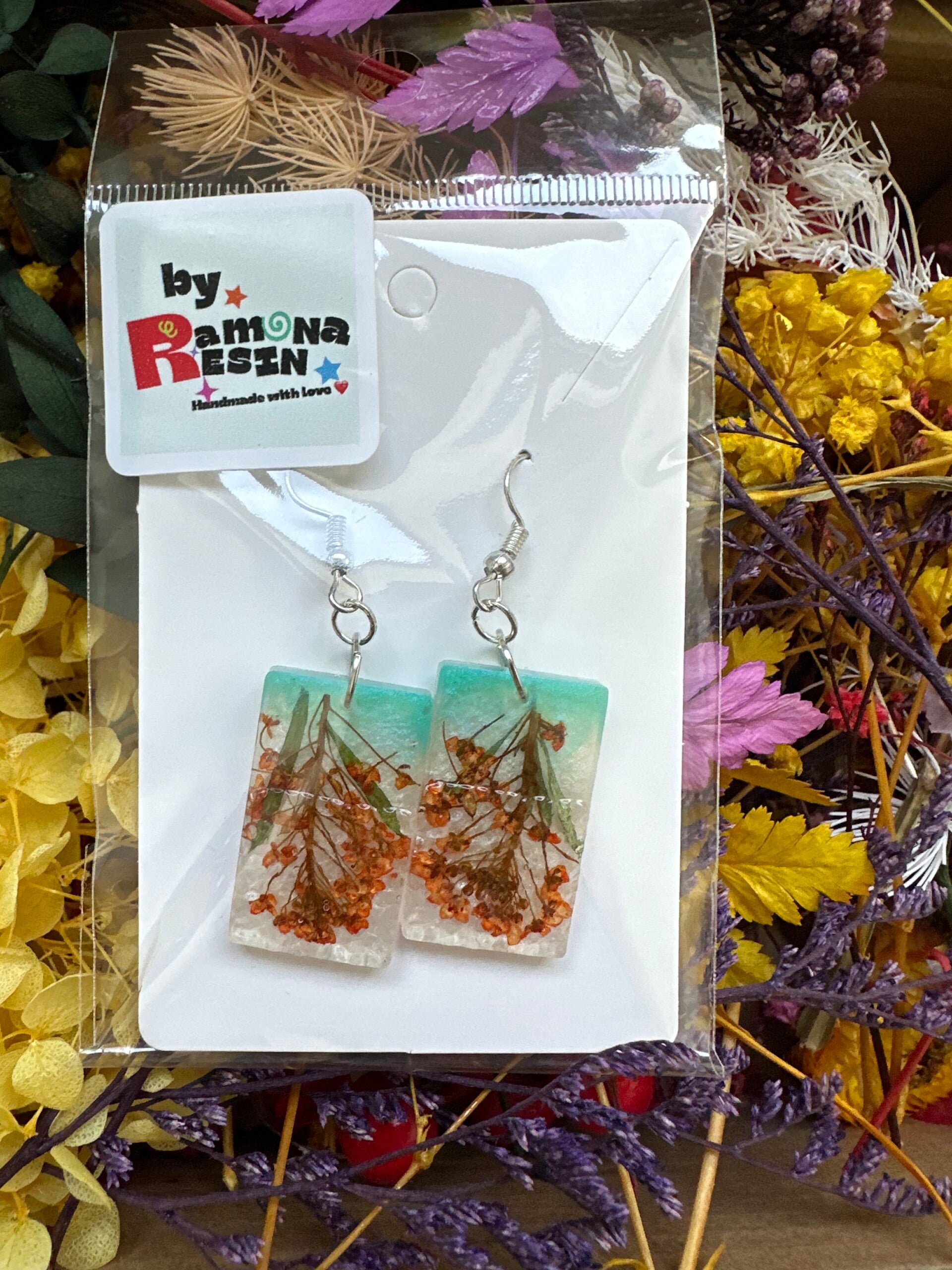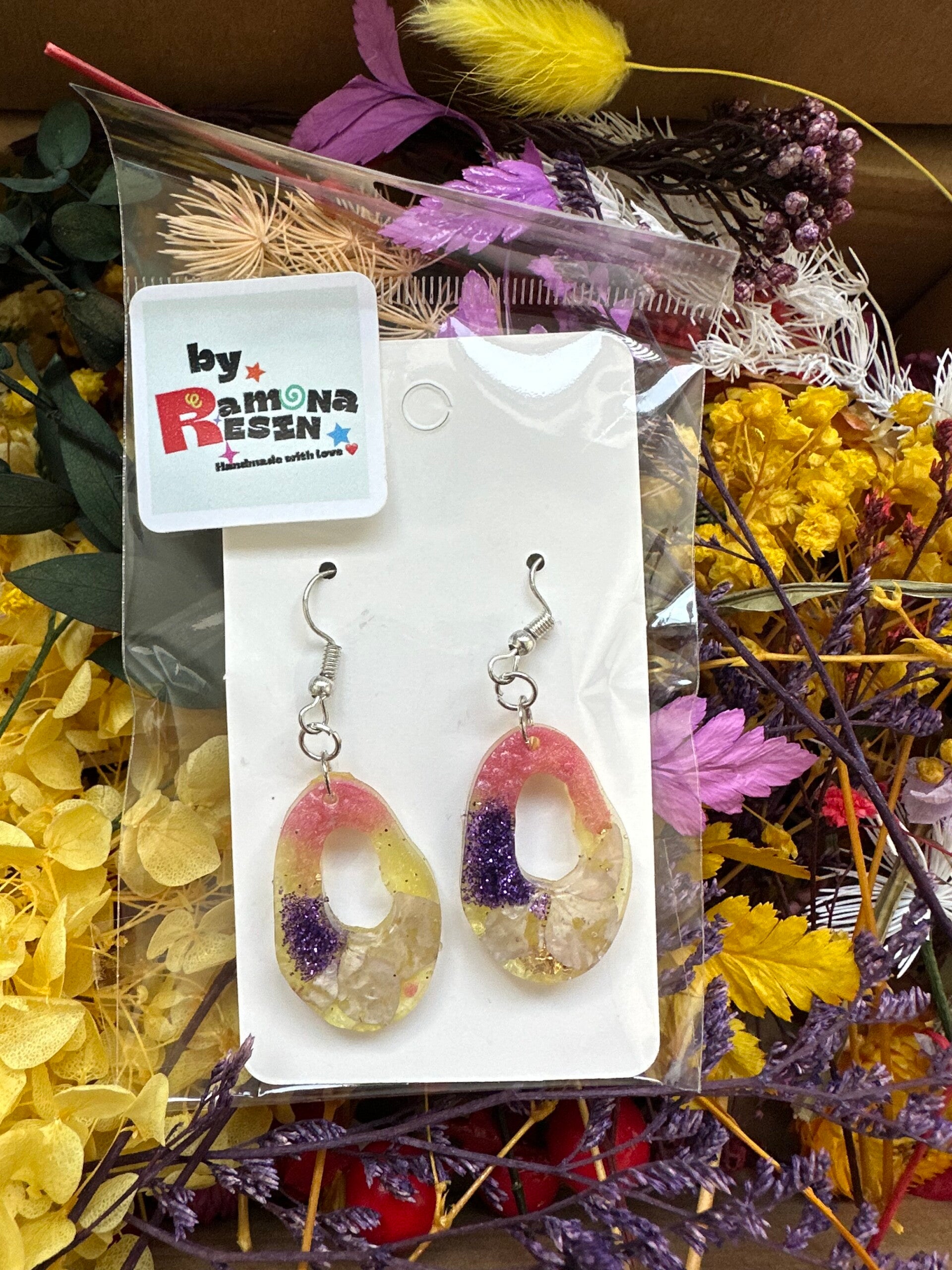 Resin floral/ colourful handmade small earrings