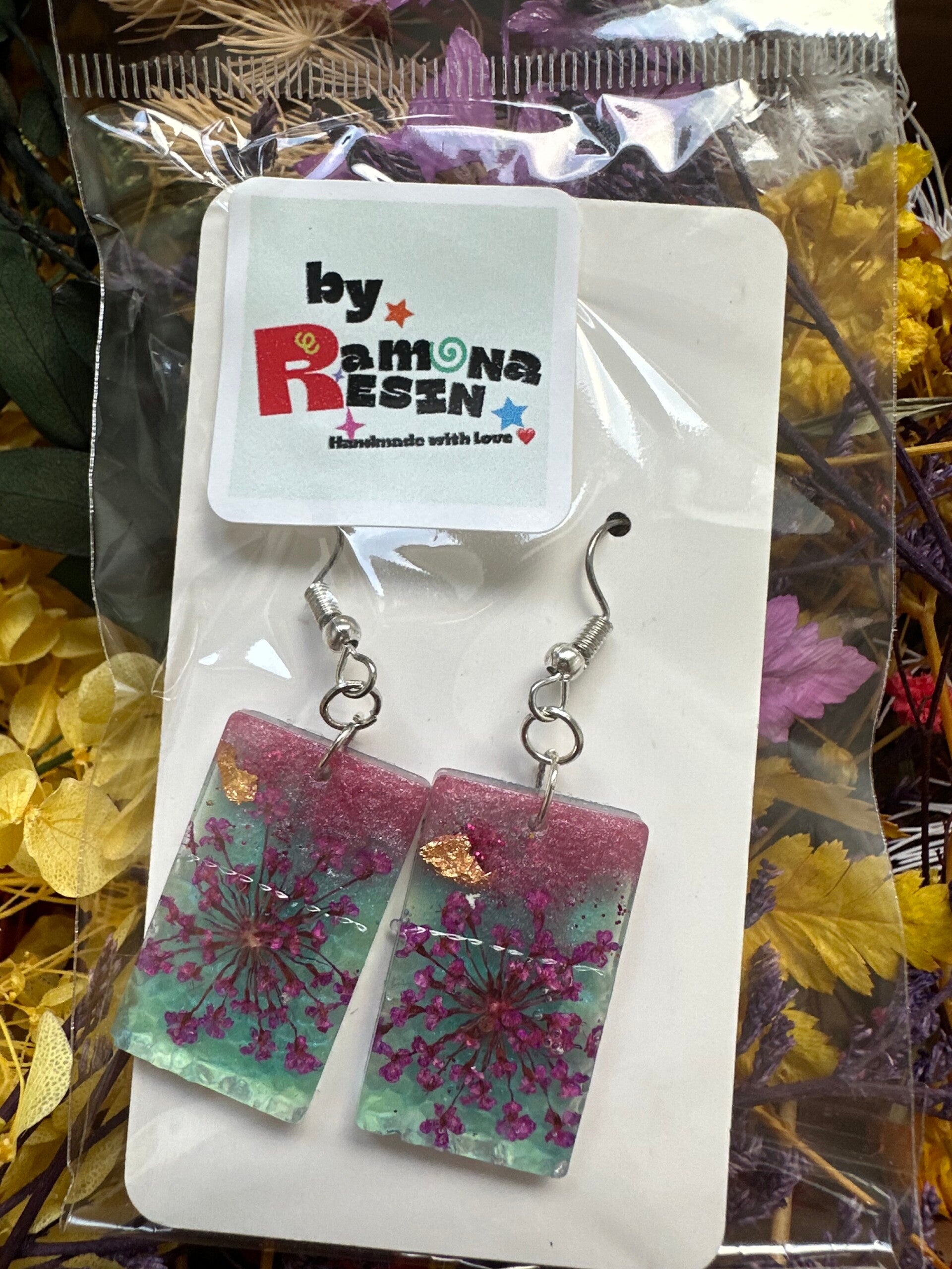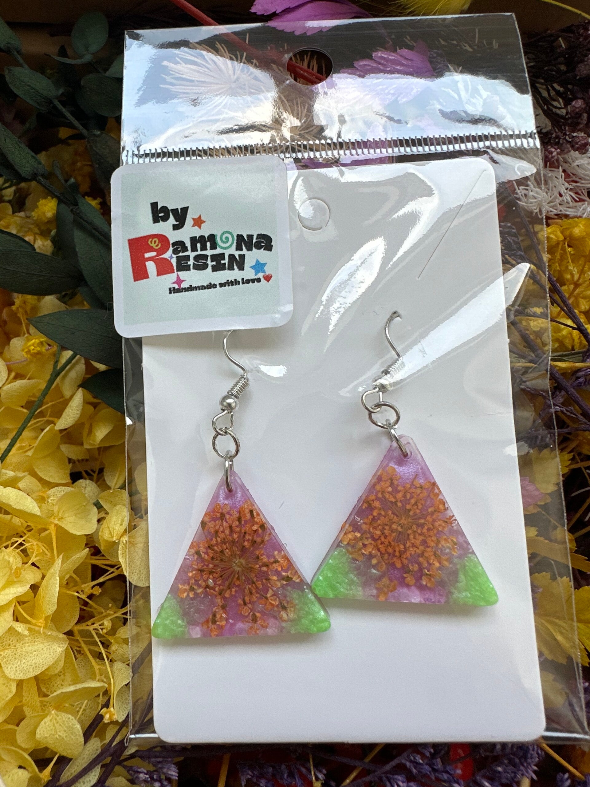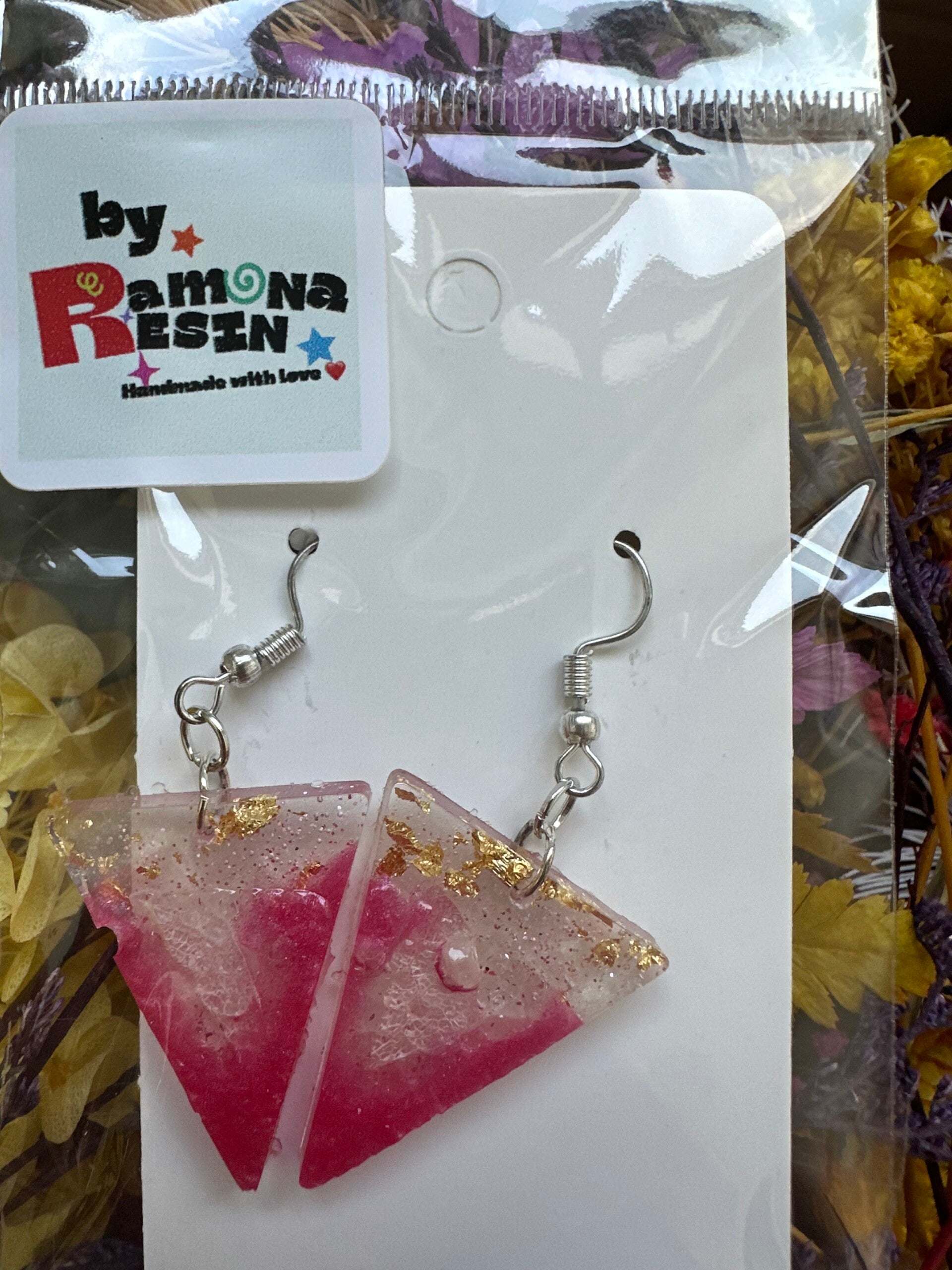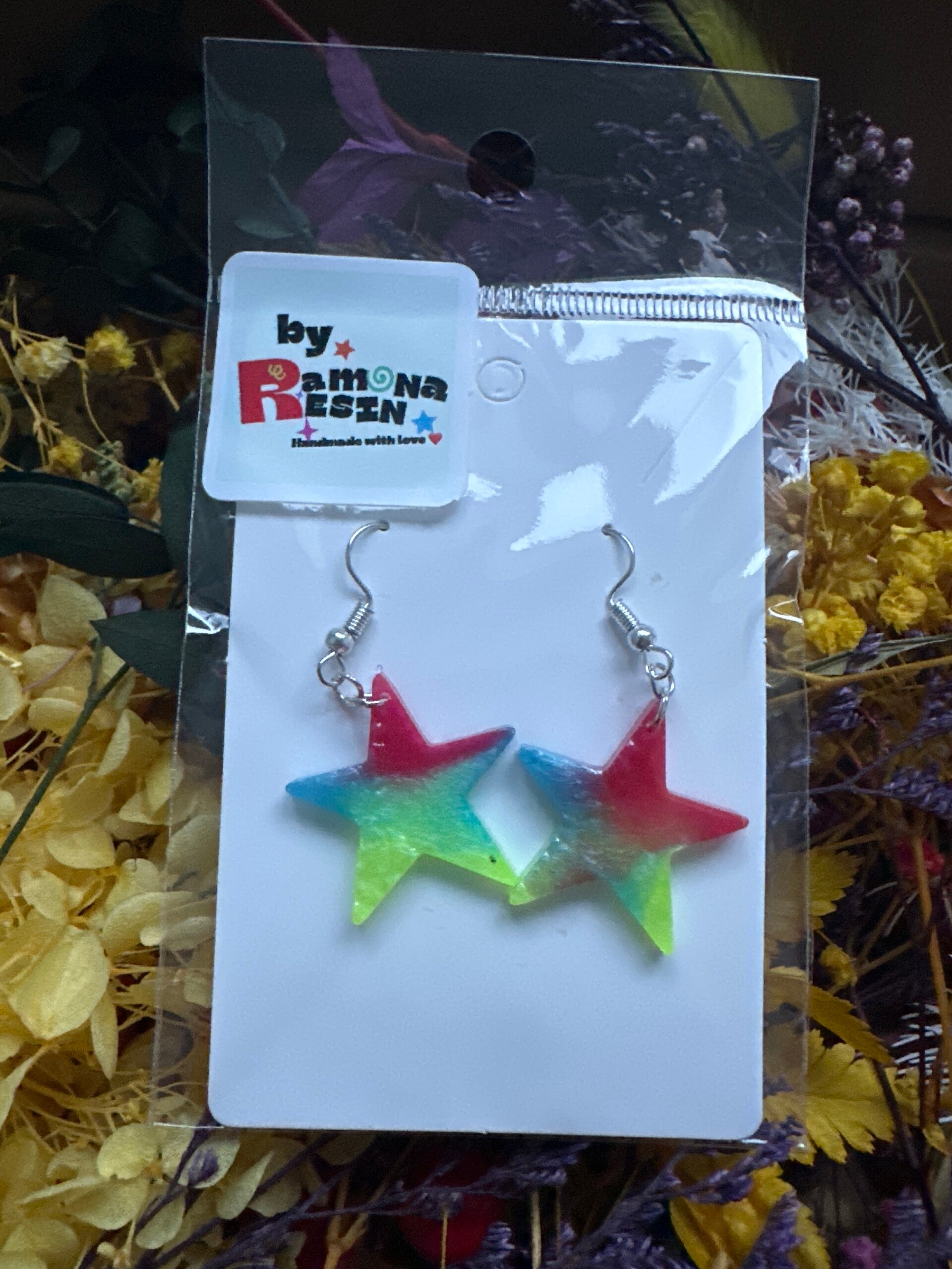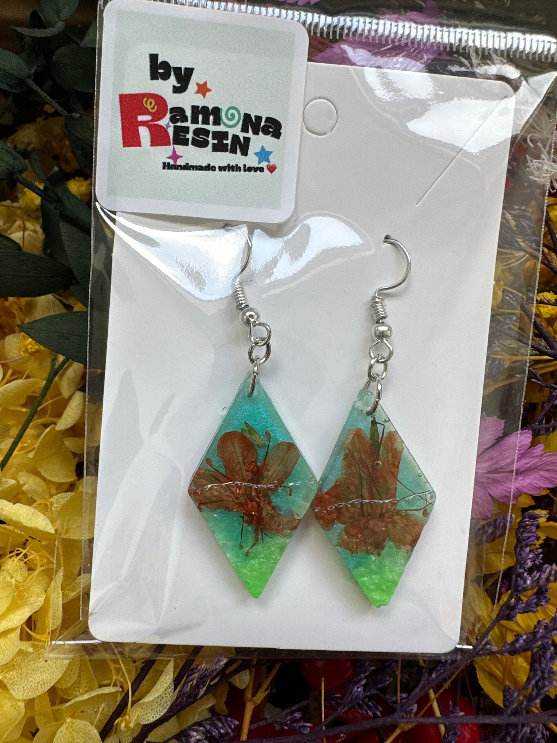 Resin floral/ colourful handmade small earrings