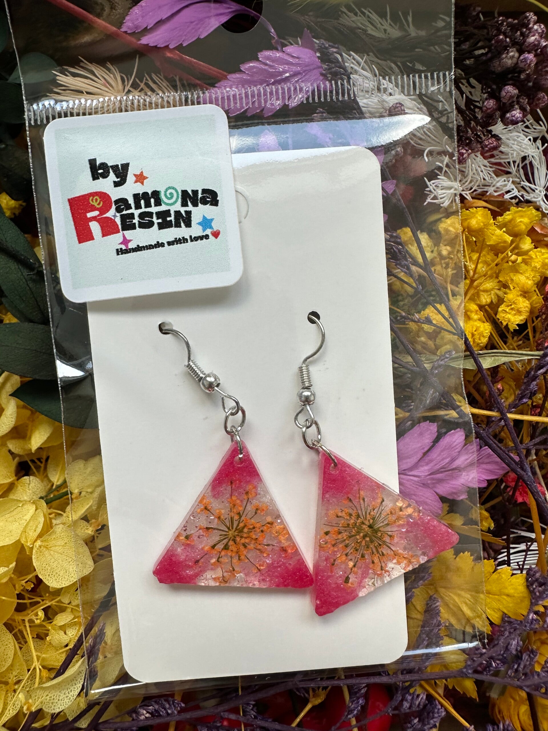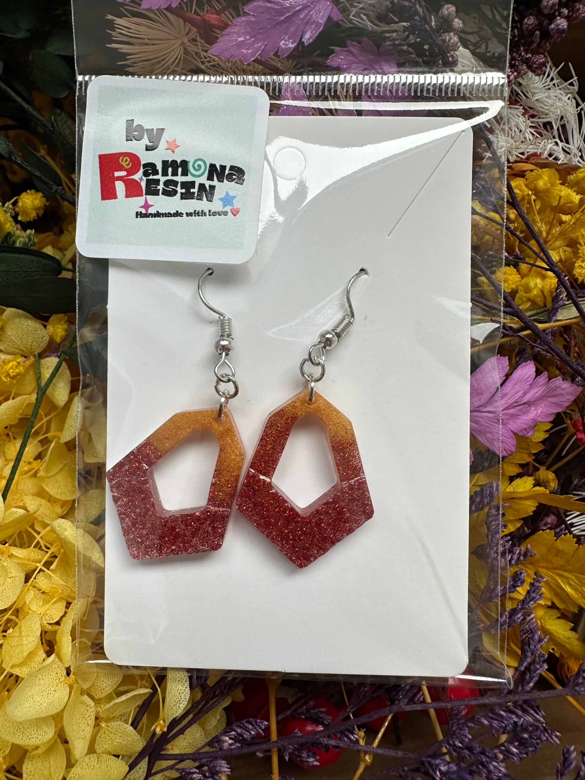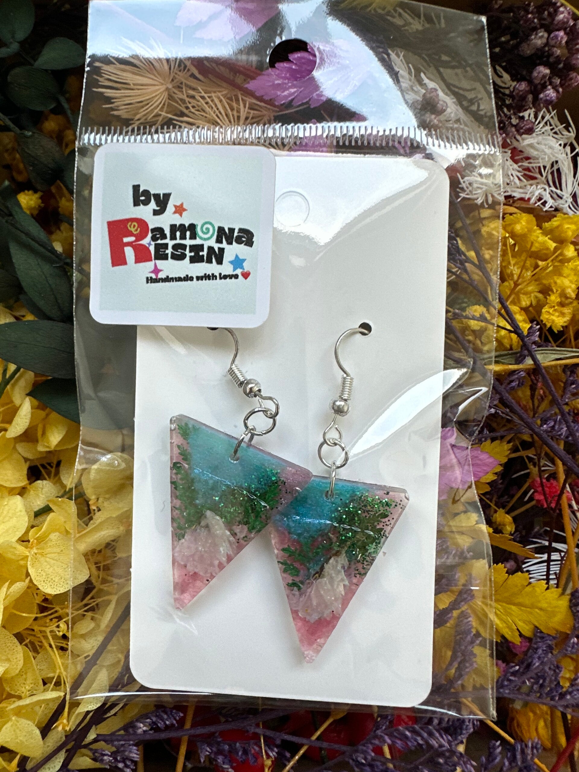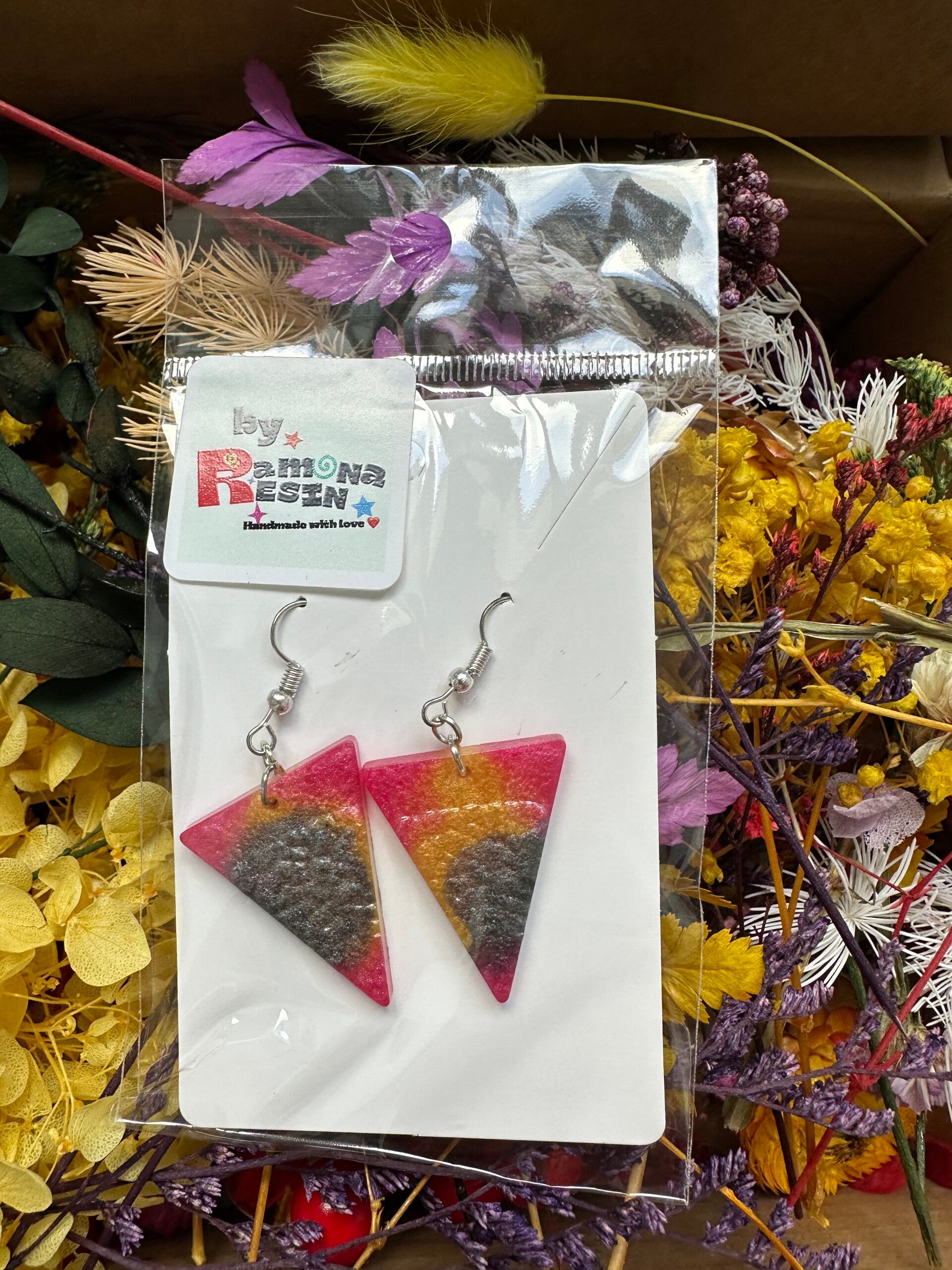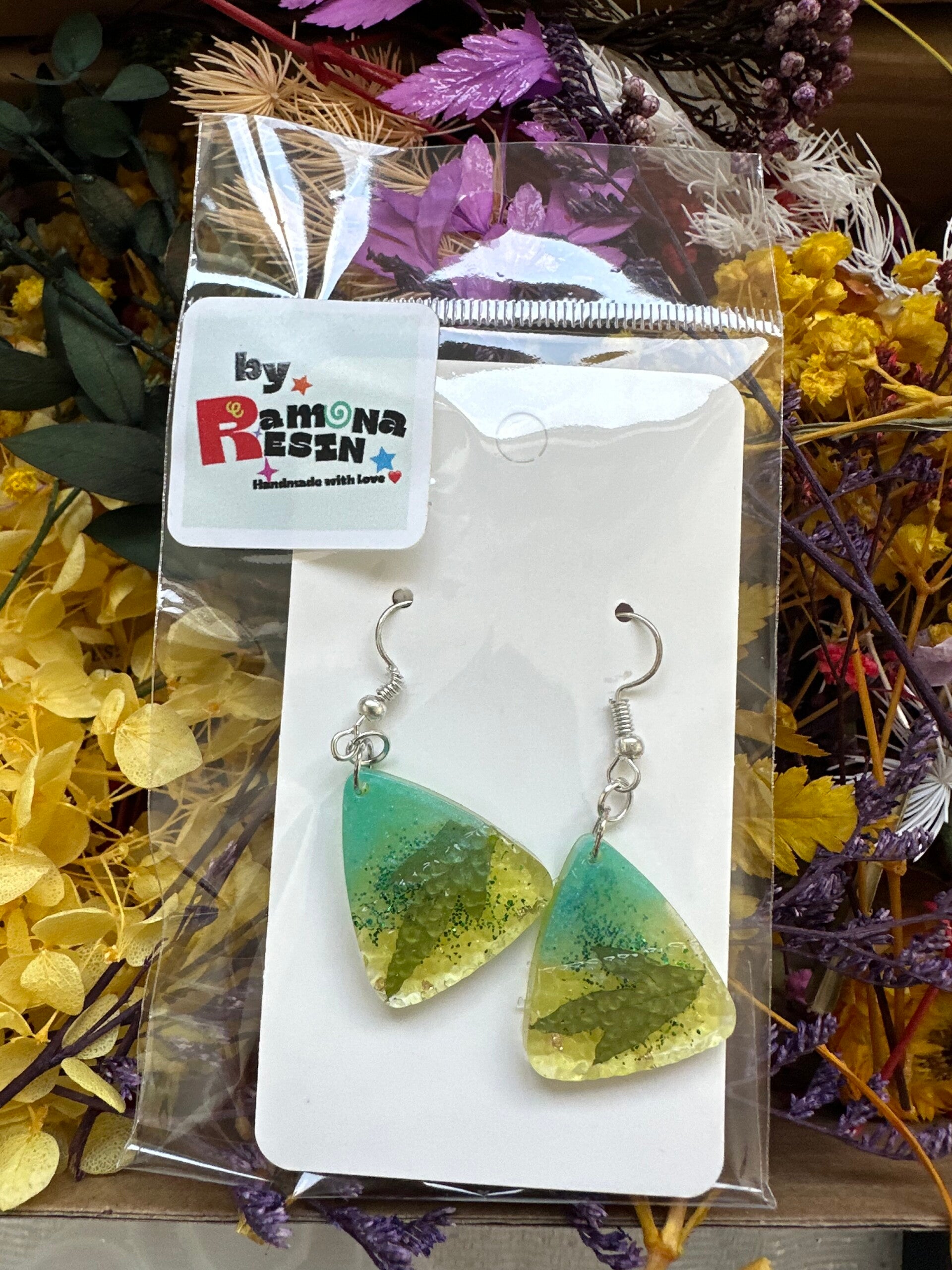Resin floral/ colourful handmade small earrings