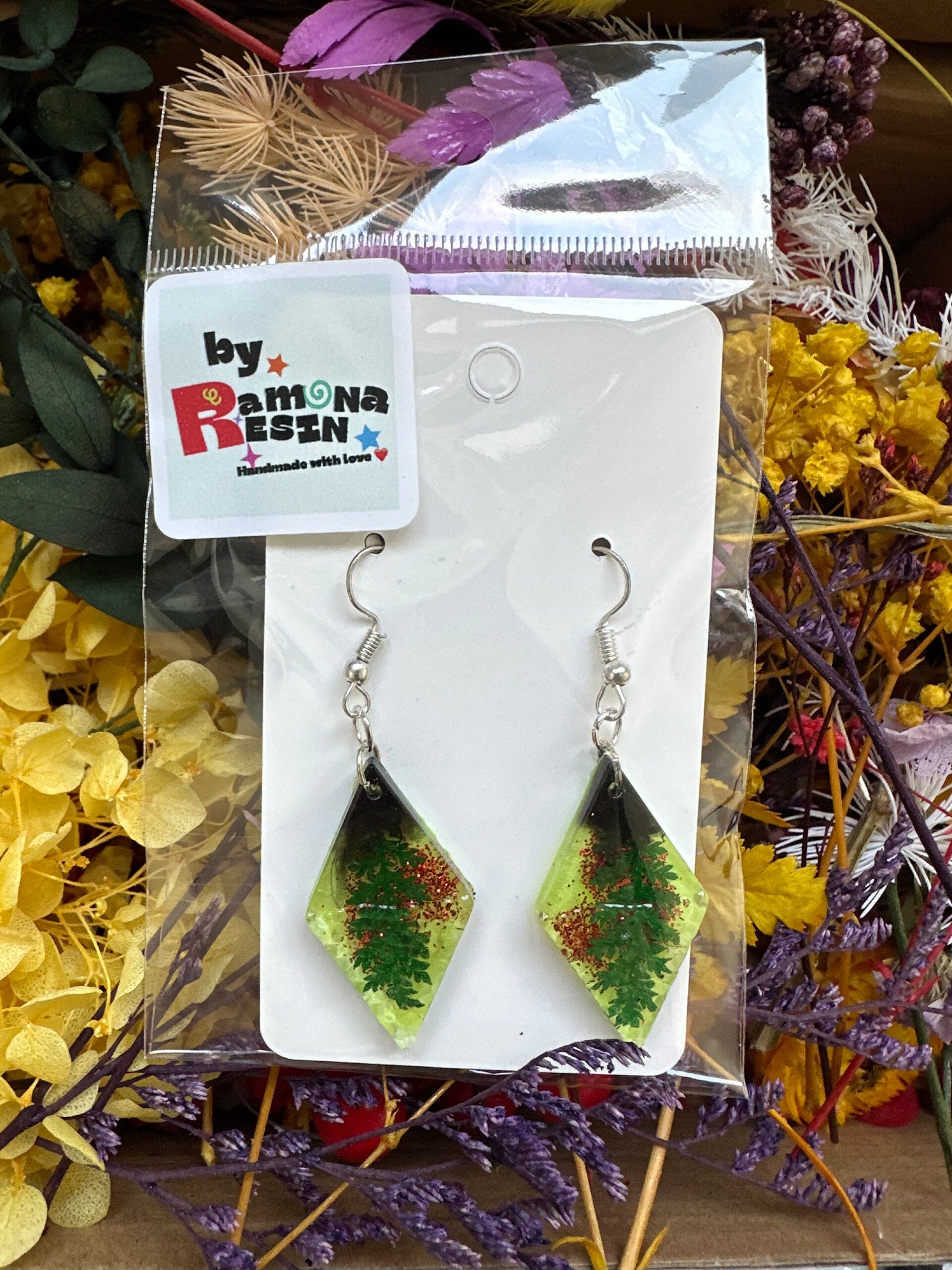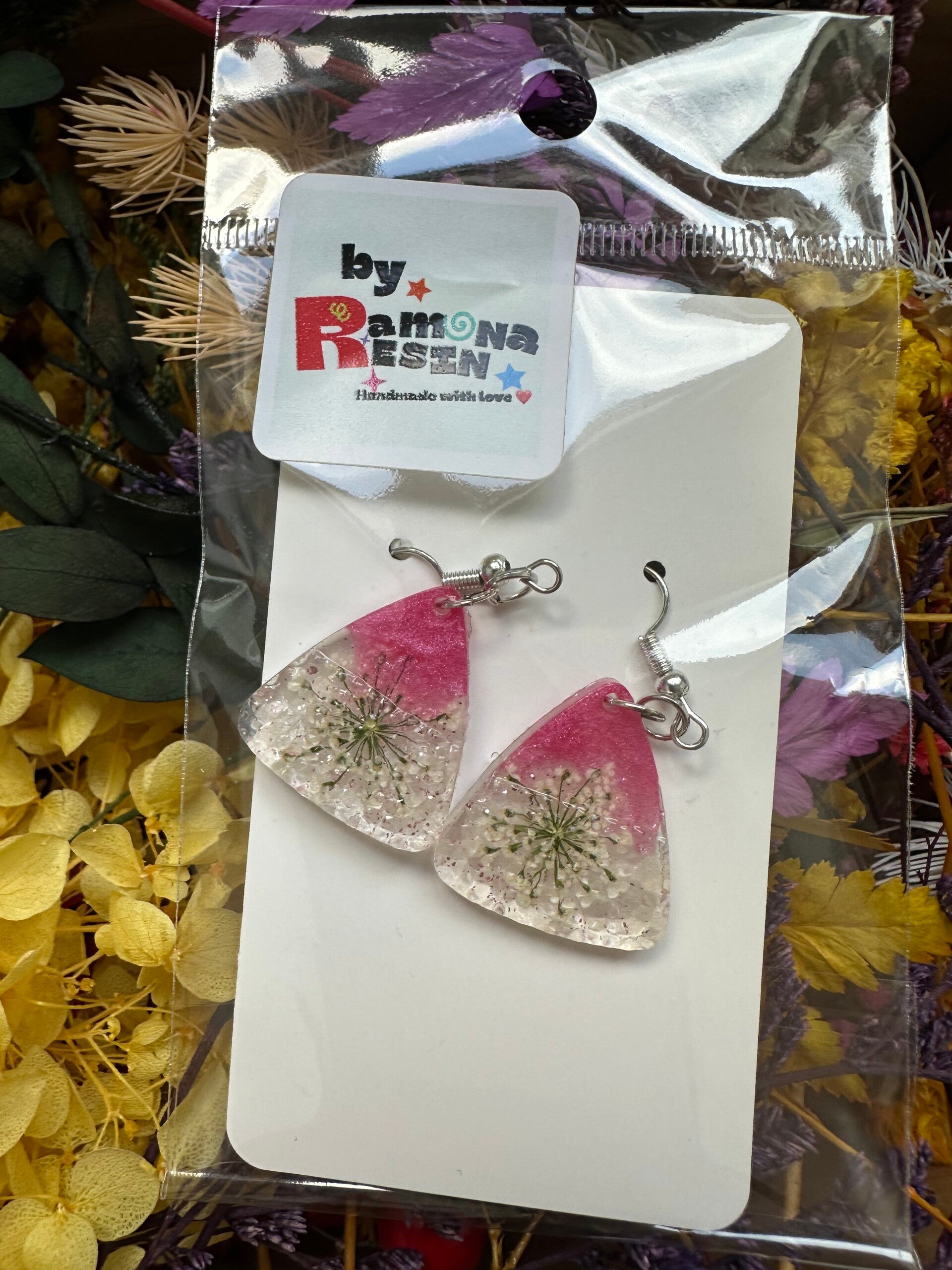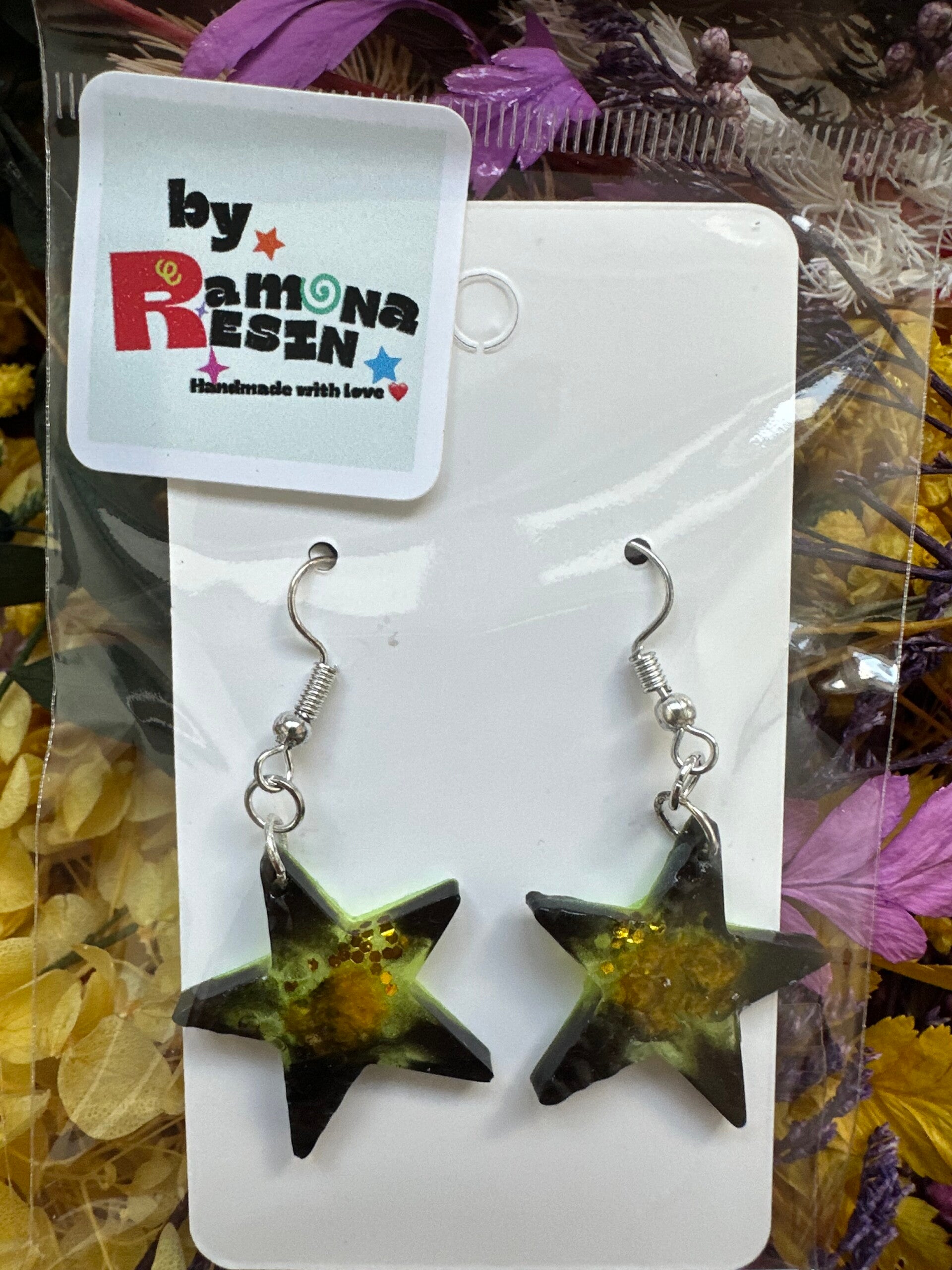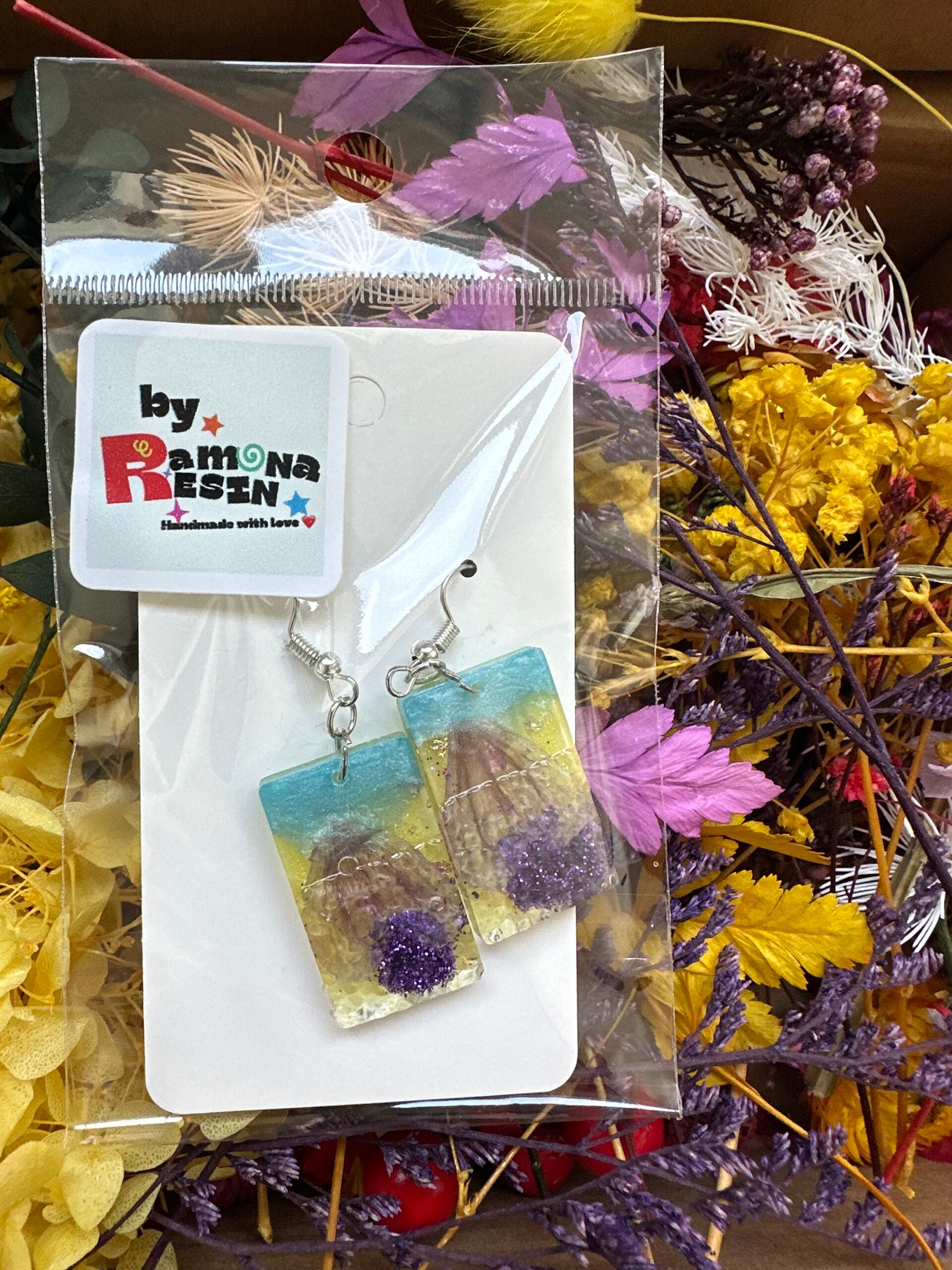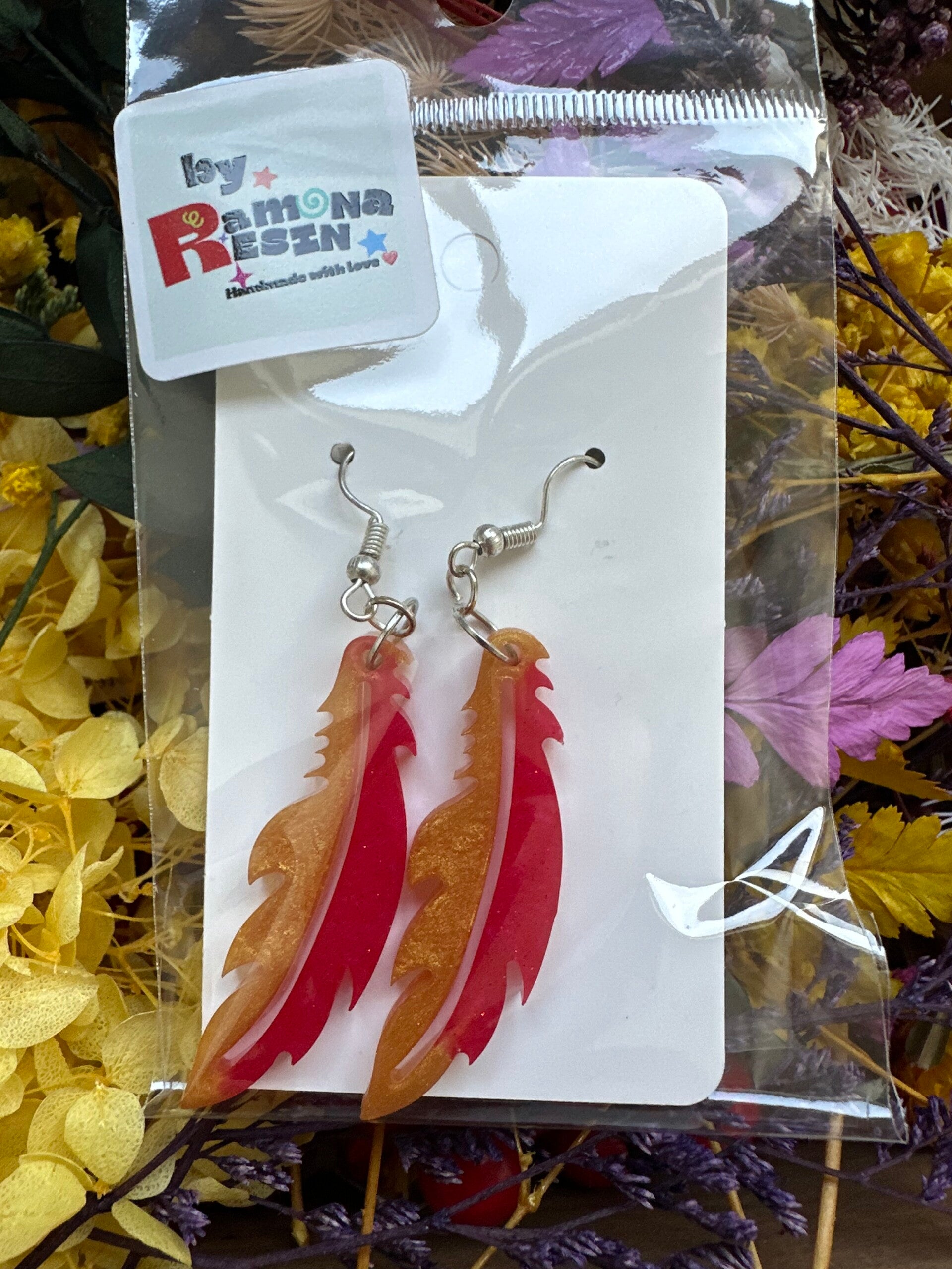 Resin floral/ colourful handmade small earrings